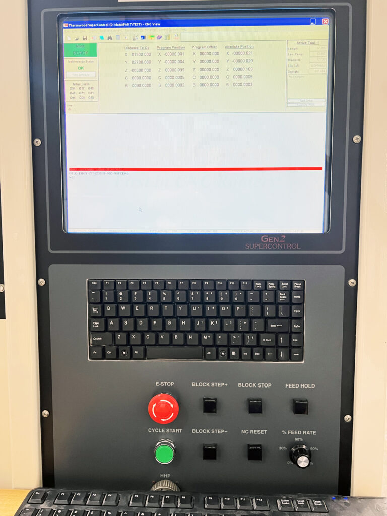 - Control System: Managed by a Thermwood Gen2 Supercontrol with a handheld handwheel for intuitive manual positioning and efficient program execution.