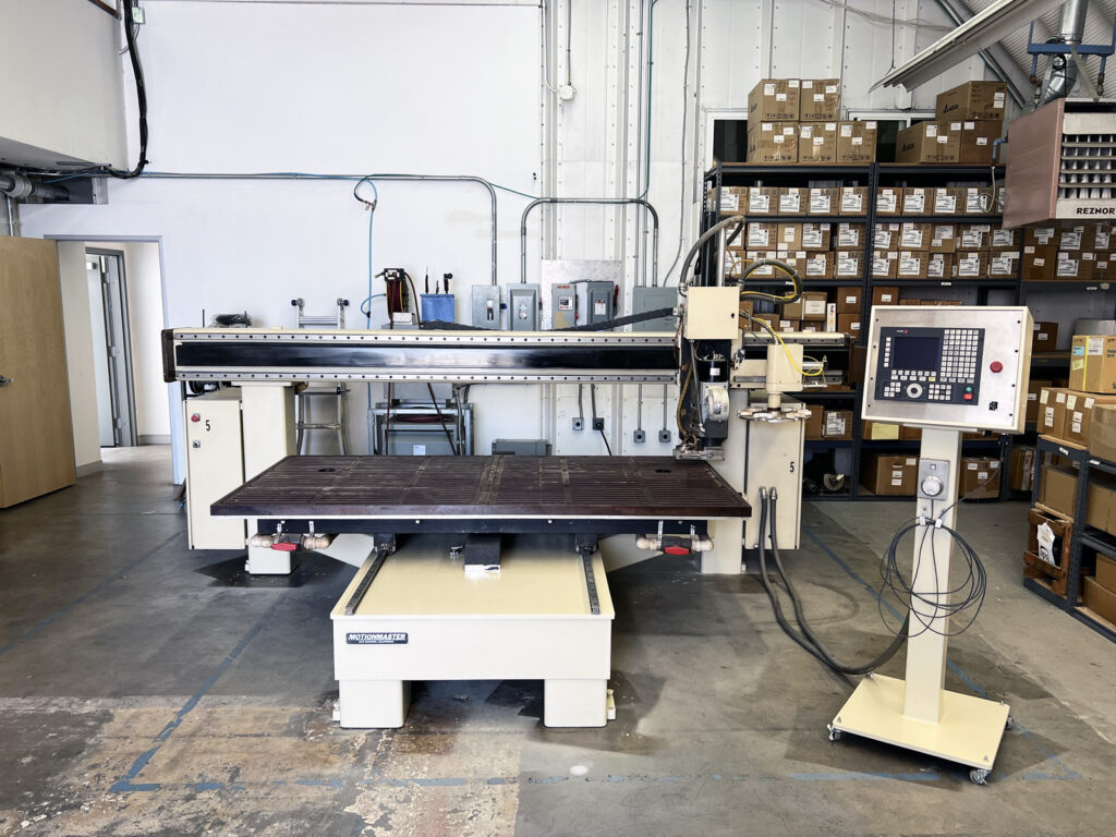Used Motionmaster 3 axis CNC router, 8×4 moving table, 16 in. stroke, 10 hp HSD ATC spindle, Fagor 8050. #C809