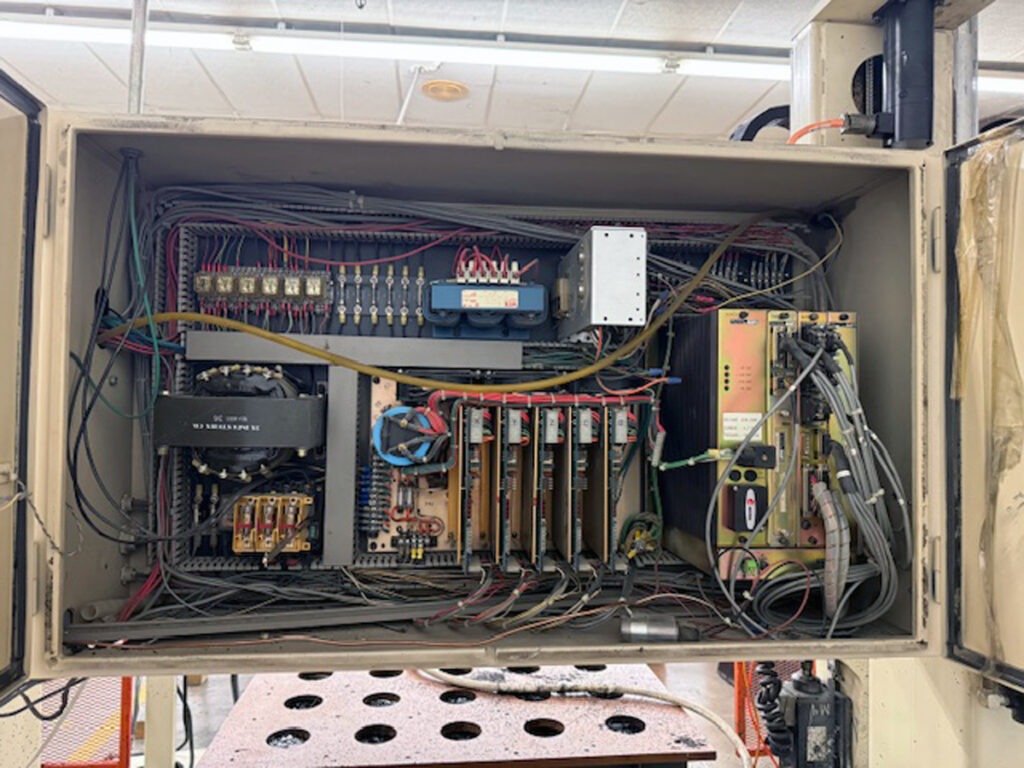 Used Motionmaster 5 axis CNC router for sale #E828 features a stationary bridge gantry, 5 ft. by 5 ft. moving router table and a 7 hp spindle motor. CNC machinery is controlled by a Fagor Automation 8050 CNC system. See more details below and contact us today for a quote.