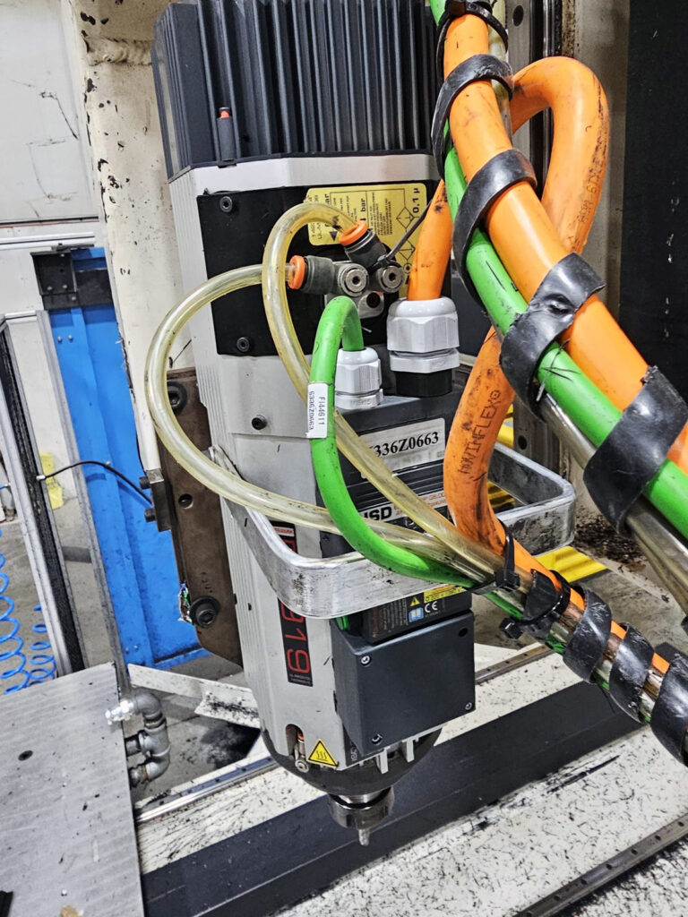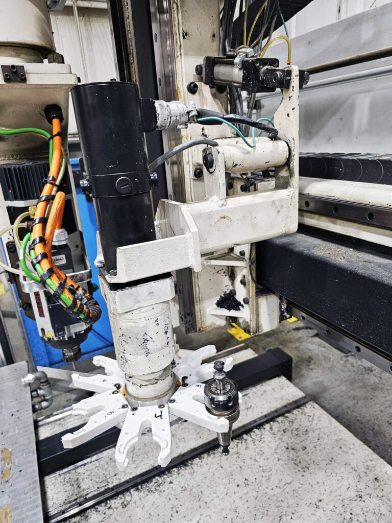 SOLD: Motionmaster 5 axis CNC router, dual 5×5 tables, 36 in. stroke, 10 hp HSD ATC spindle, 6-tool carousel, Fagor 8055 Power. #E772