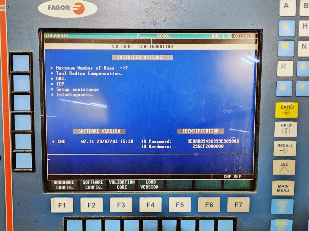 SOLD: Motionmaster 5 axis CNC router, 5×5 moving table, 36 in. stroke, 7.5 hp Perske spindle, Fagor 8055-B, teach pendant.